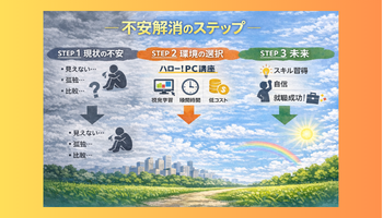 人は、ゴールまでの道のりが明確に見えていないとき、最大のストレスを感じます。特にパソコン操作に慣れていない場合、「自分が何を知らないのかすら分からない」状態に陥りがちです。この全体像の欠如が、漠然とした不安を生み出しています。
