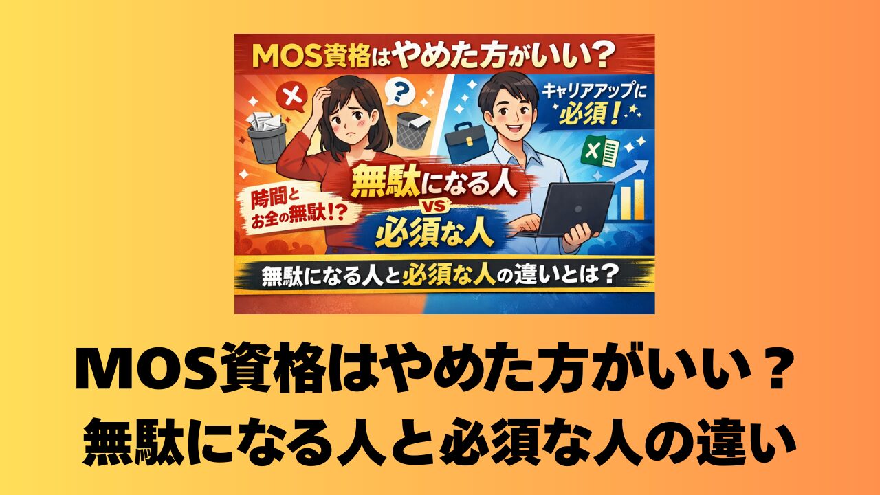 この記事では、漠然とした不安を整理し、あなたが「MOSを目指すべきか、別のスキルに時間を使うべきか」を冷静に判断できるよう解説します。失敗談の背景にある理由を知れば、もう迷うことはありません。