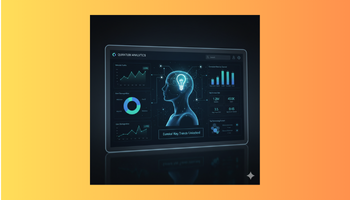 Googleアナリティクスのような分析ツールのダッシュボード画面をイメージ。様々なグラフや数字が並び、その中から重要なインサイトを見つけ出す人物のシルエットが描かれている。